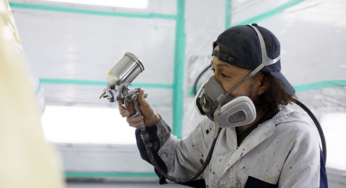 弊社板金・修理工場では、 最新の設備と 国産塗料と環境問題に取り組んだR-M水性塗料を使用し、国産車から高級外車のキズ直し、板金・修理を業界最高の品質に仕上げます。